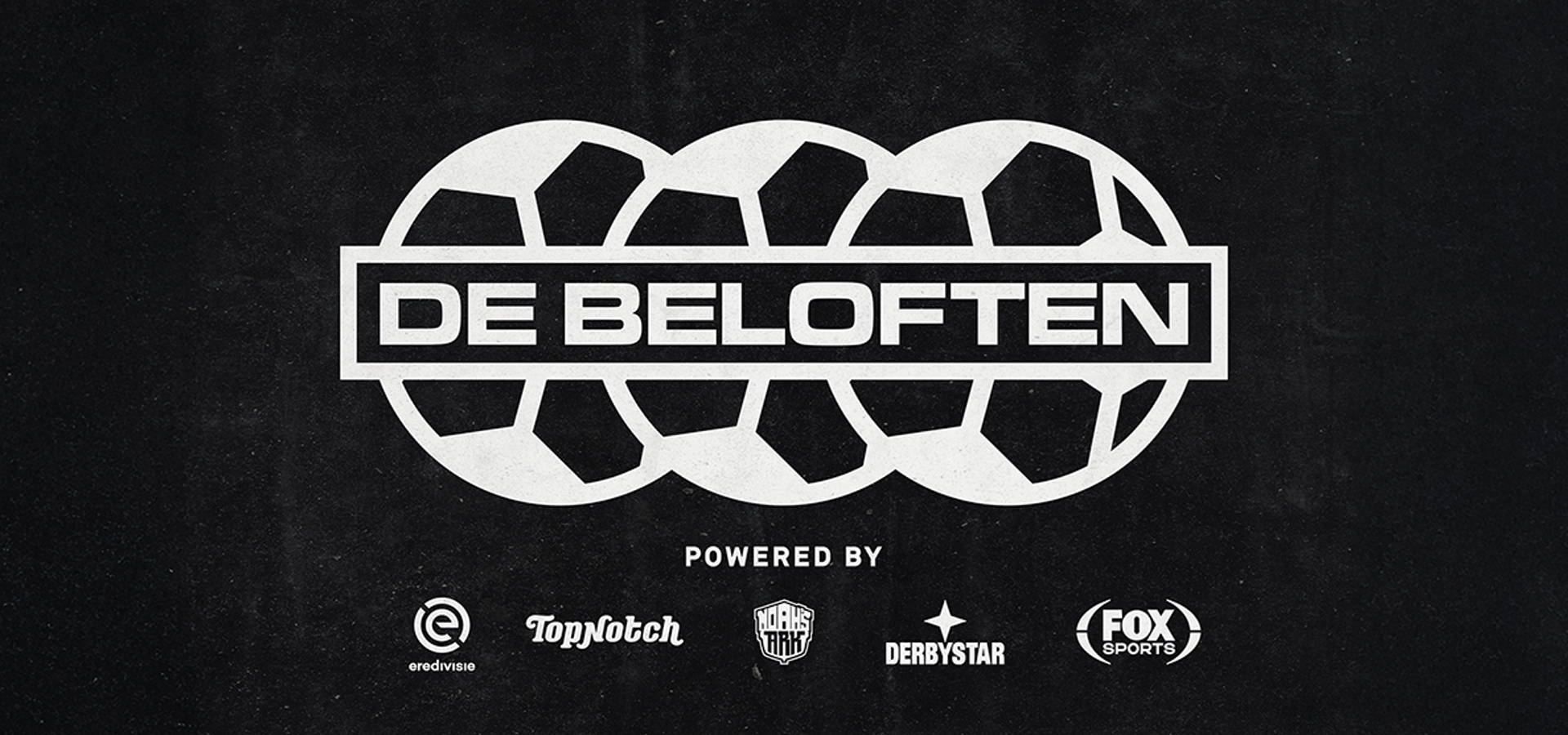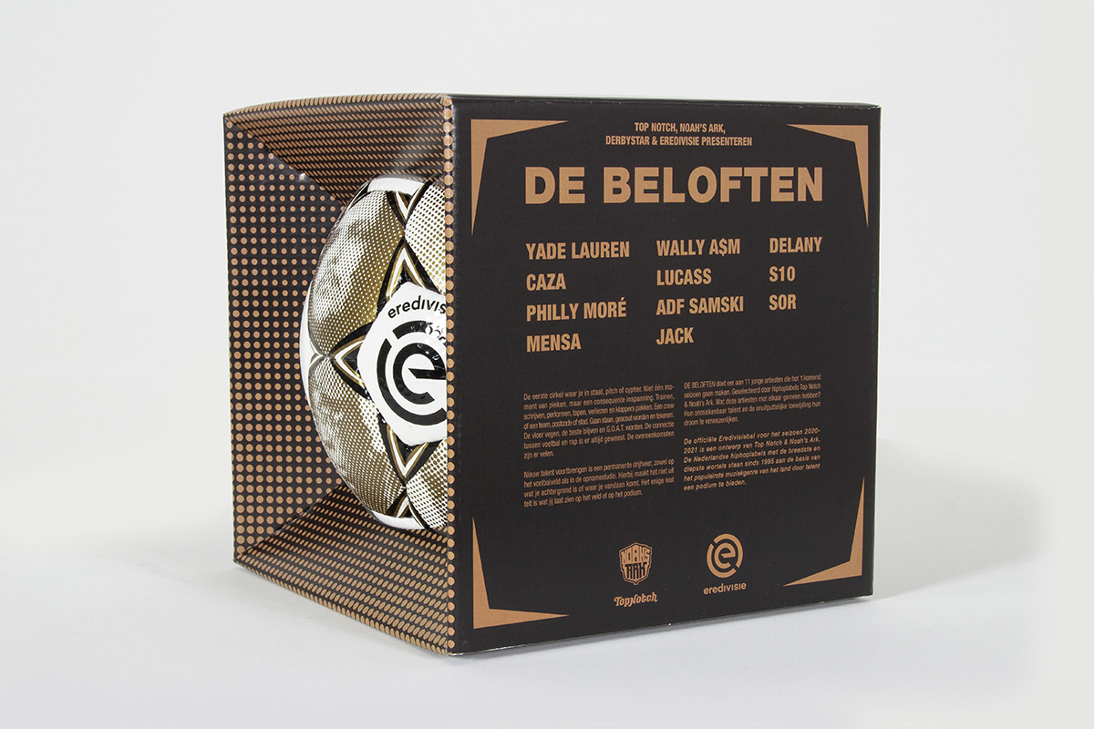 Logo and animation design for “De Beloften” during my time at Top Notch / Noah's Ark. The campaign for the Eredivisie ball design in collaboration with FOX Sports, Eredivisie, Derbystar, Top Notch and Noah’s Ark. This ball was used throughout the season during the Eredivisie matches in 2020/21. The concept of this ball design was to put a team of talented Dutch hip-hop artists on stage. With this logo design I wanted to implement football elements and a bold typography that resonates with the artists. Next to this I created animated reveals for the artists that are presented on the ball.