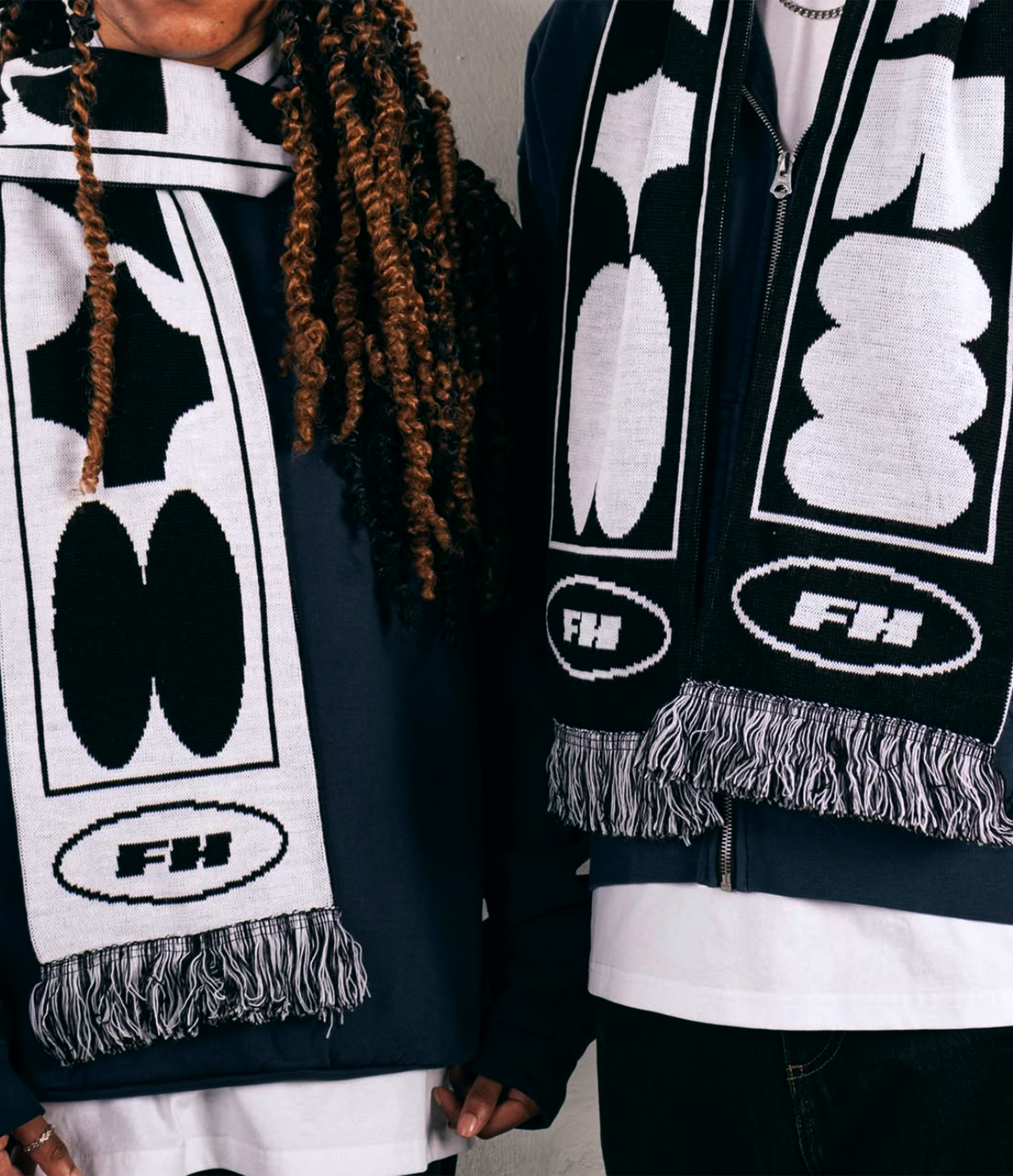 A typographic scarf design where the words “Stay Warm” are formed through simple shapes. By experimenting with different shapes and letters, these abstract letter shapes were created. The phrase comes from Funkie House’s 2023 winter slogan "Stay Warm Stay Funkie, and the design turns that idea into a playful graphic pattern across the scarf.